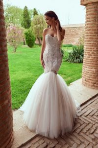 Rochia perfecta: O coafura care emana eleganta se potriveste de minune cu rochiile noastre de mireasa din colectia Queen. Asadar, iti propunem sa alegi o rochie demna de o regina, cu trena lunga detasabila si corset din pietre stralucitoare.