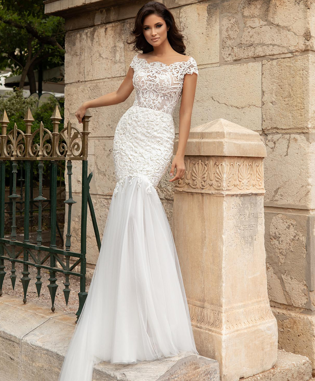 Rochia de mireasa Saona are un decolteu adanc in V, completat de un material usor transparent. Cu toate ca este un decolteu generos, nu este deloc vulgar, atat datorita materialului usor transparent care acopera, dar si datorita croielii rochiei. Este o rochie senzuala, dar care isi pastreaza eleganta si bunul gust. Se potriveste atat pentru busturile generoase, dar si pentru cele mai mici.