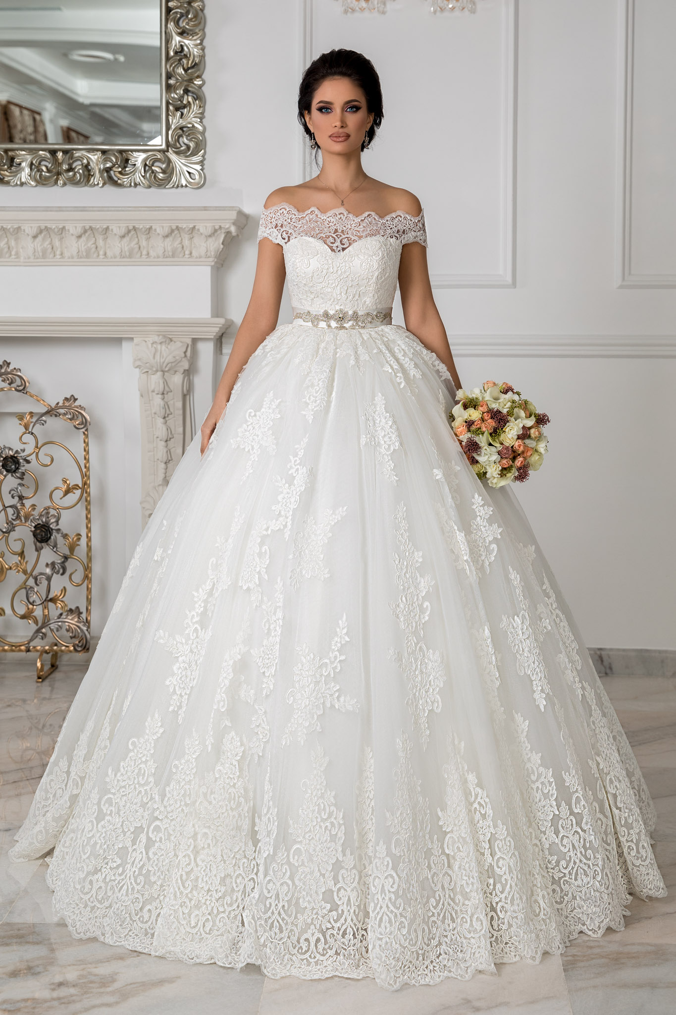 Iar daca iti doresti un look clasic, dar care sa impresioneze toti invitatii, alege Rochia de mireasa Bluebell. Este intruchiparea perfecta a unei rochii de printesa: manecute cazute, din dantela, talia evidentiata cu ajutorul unei aplicatii stralucitoare si fusta cu volum impresionant.