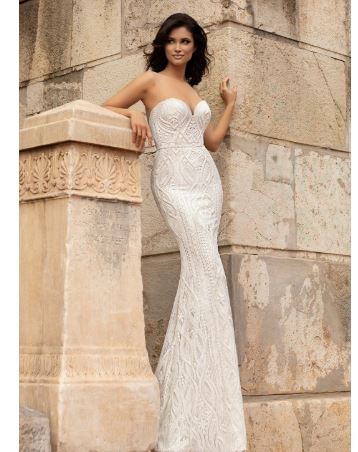 Rochia de mireasa Tahiti iese in evidenta datorita dantelei brodate cu pietre fine. Este o rochie eleganta, o rochie care merita a fi purtata la o petrecere organizata la un palat spre exemplu, pentru a va simti ca o veritabila printesa.