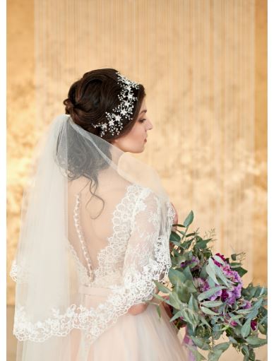 Un voal delicat, care se potriveste unei mirese clasice este voalul de mireasa VL 16- Orhidea 1. Acest voal poate fi purtat atat cu o rochie alba, dar si daca alegeti o rochie de o alta culoare. Iese in evidenta, insa intr-un mod placut si cu siguranta o sa va simtiti ca o printesa in ziua nuntii, purtandu-l.