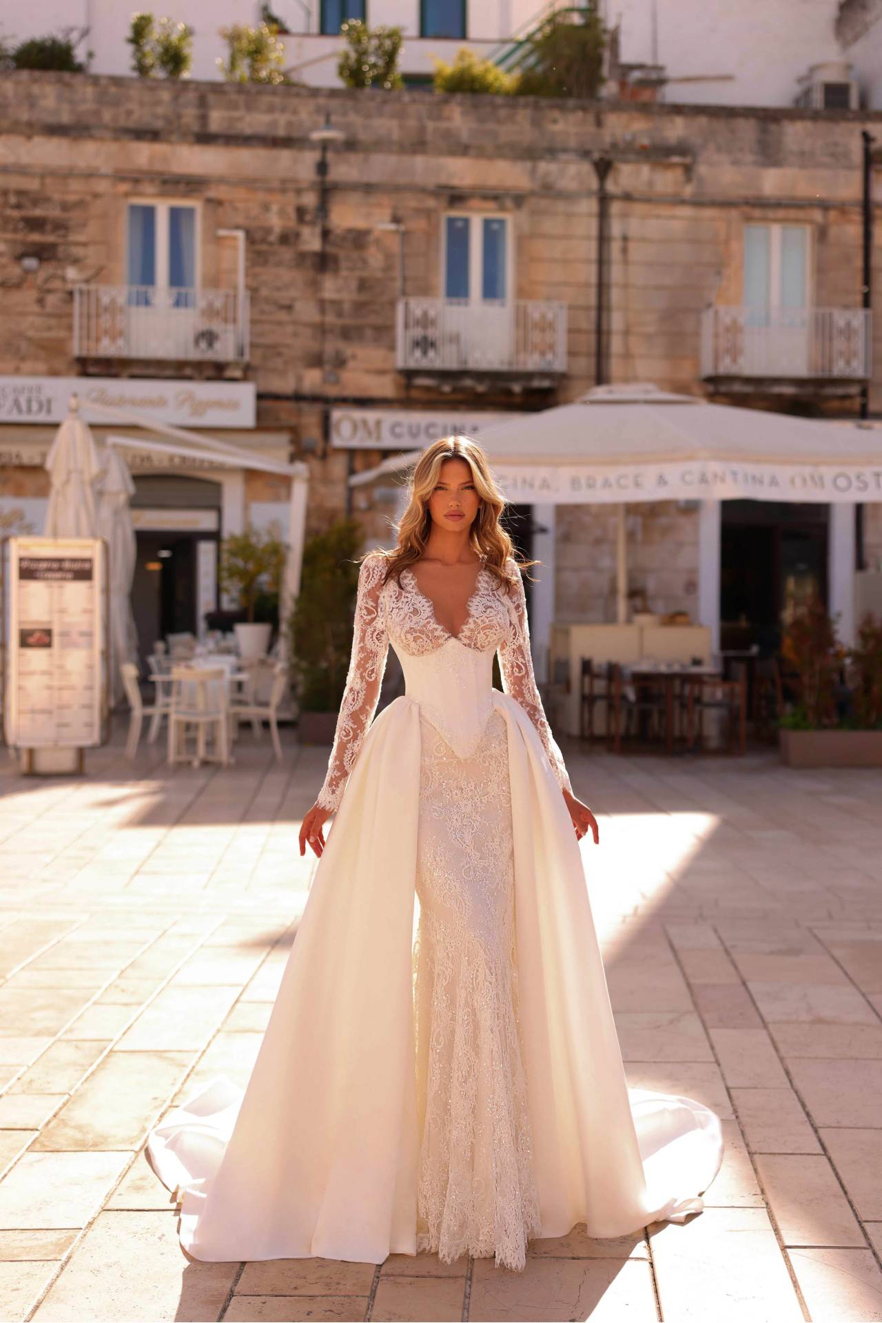 Rochie de mireasă Emma – rochie de mireasă sirenă din dantelă brodată, cu mâneci lungi și eleganță atemporală