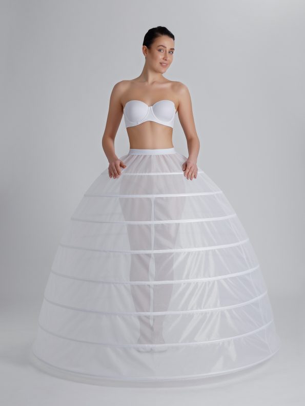 Incepem prin a-ti recomanda o crinolina pentru rochiile tip printesa. Acestea sunt cele mai cautate si sunt cele care de obicei au nevoie de sustinerea oferita de acest accesoriu. Rochiile tip printesa au nevoie de o crinolina pe masura in primul rand pentru a sustine forma rochiei, pentru a-i conferi volum si pentru a te ajuta sa mergi mai usor si sa dansezi fara probleme. Daca vei imbraca o rochie tip printesa, iti recomandam sa alegi Crinolina 783, cu opt cercuri. Este realizata din cele mai bune materiale si se va adapta miscarilor pe care le faci, astfel incat sa nu se vada inestetic. Nimeni nu isi va putea da seama ca rochia ta este sustinuta de un ajutor de nadejde.