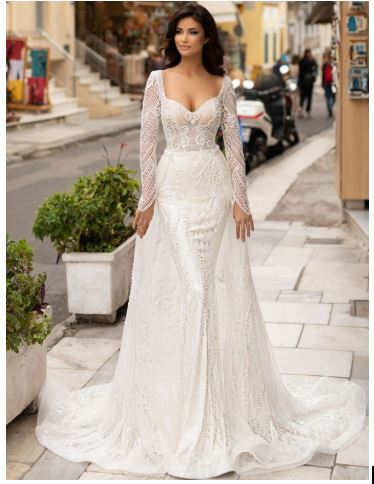 Anul acesta, sunt la mare cautare rochiile de mireasa transformabile. Asa ca prima recomandare este Rochia de Mireasa Aruba 2 in 1. La baza, este o rochie de mireasa tip sirena, dar este prevazuta si cu o trena detasabila, care transforma total rochia. Astfel, daca veti detasa trena, o sa va bucurati de o cu totul alta rochie. Este un ,,artificiu” foarte indragit in ultima perioada, pentru ca miresele se pot bucura de doua rochii diferite, fara a plati pretul a doua rochii, ci doar o suma mai mica pentru trena detasabila.