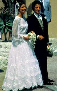 Casatoria Printesei Carolina de Monaco cu Philippe Junot a avut loc pe 28 iunie 1978, chiar la Monaco. Superba printesa a preferat o rochie de mireasa inspirata de anii 70, creata de Marc Bohan. Rochia in forma de A a fost realizata din dantela translucida, accesorizata cu broderii florale. Rochia a avut maneci lungi, usor evazate.