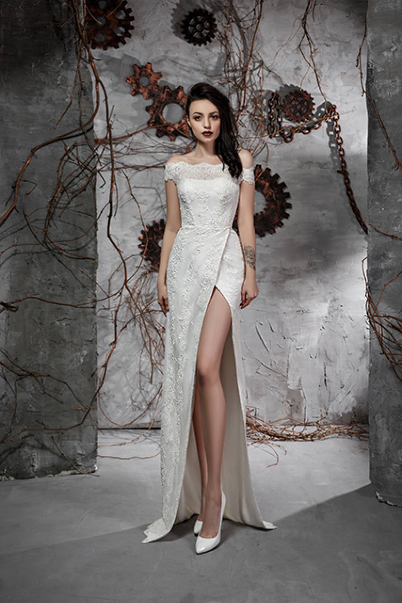Rochia de mireasa Carese este personificarea senzualitatii combinate cu comfortul. Crapatura de pe picior este detaliul care iese in evidenta iar dantela dispusa in forma de barcuta se combina armonios cu aceasta. Rochia dispune si de o trena detasabila din organza care face ca rochia sa fie deosebita.