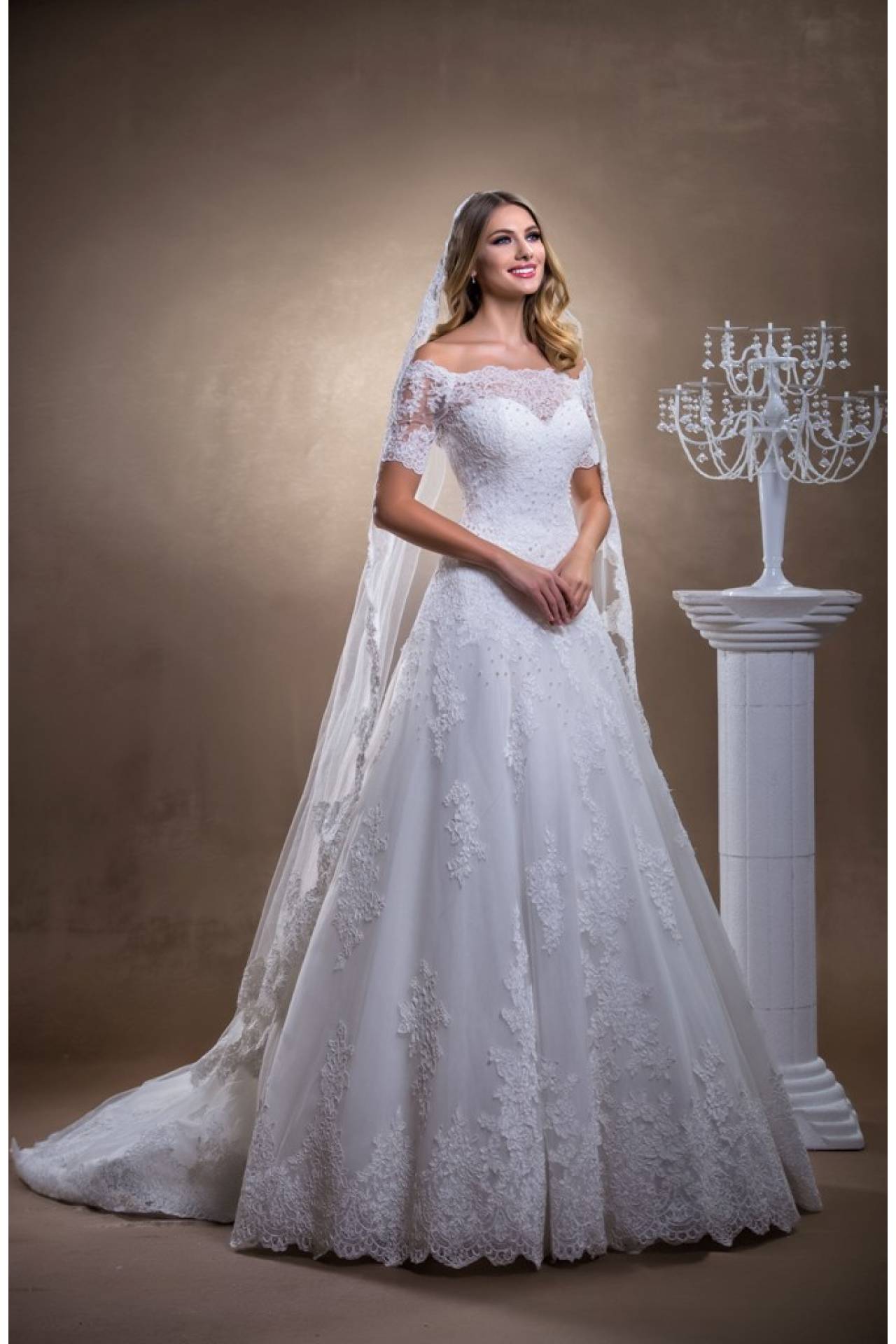 Rochie de mireasa Catherine , model A line barcuta la decolteu si spatele cu broderie