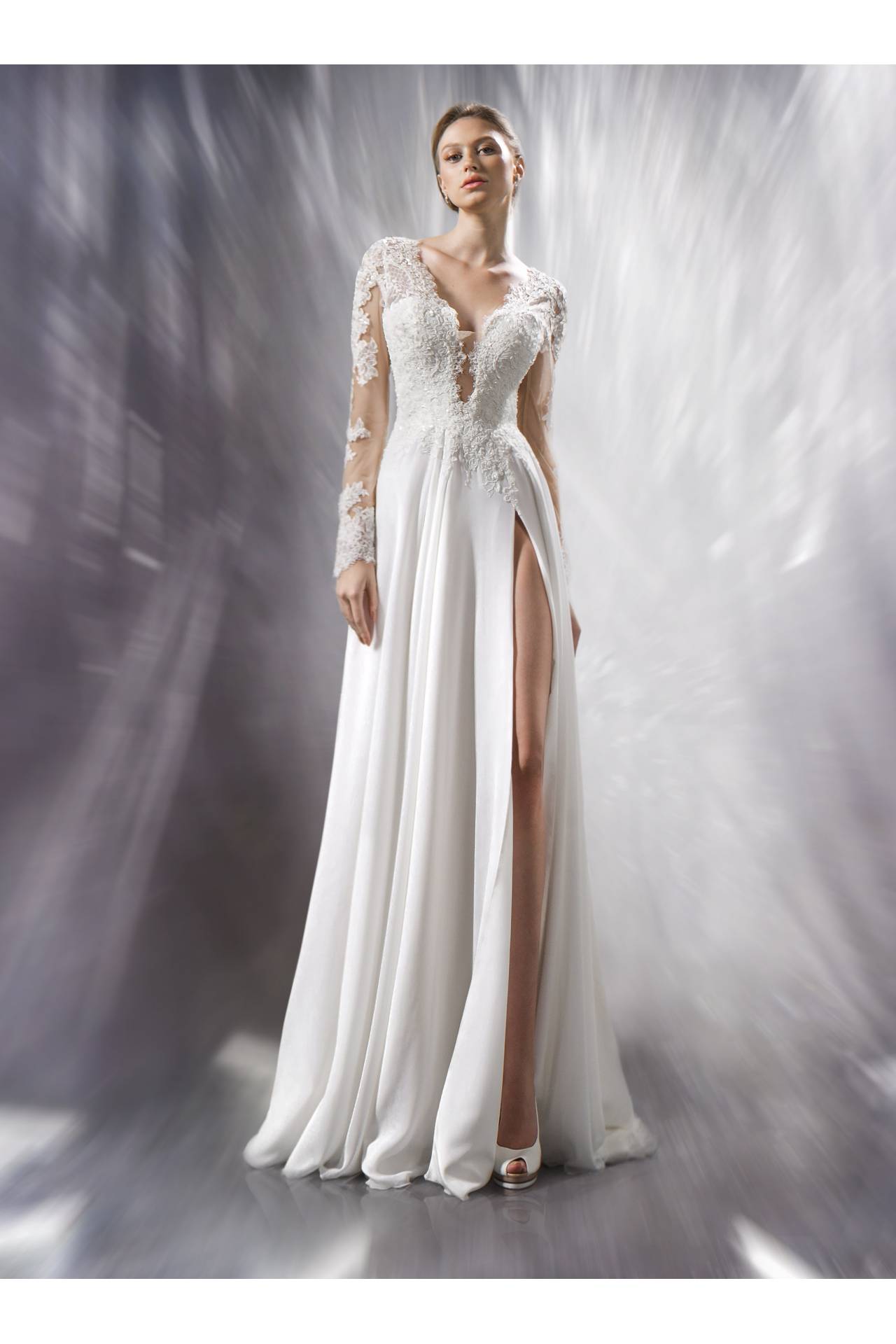 Rochia de mireasa Jovial este foarte potrivita pentru miresele care isi fac nunta pe plaja, intr-o gradina sau chiar la piscina. Crapatura senzuala si adanca pe picior va atrage privirile tuturor iar decolteul generos confera o senzualitate rafinata rochiei.