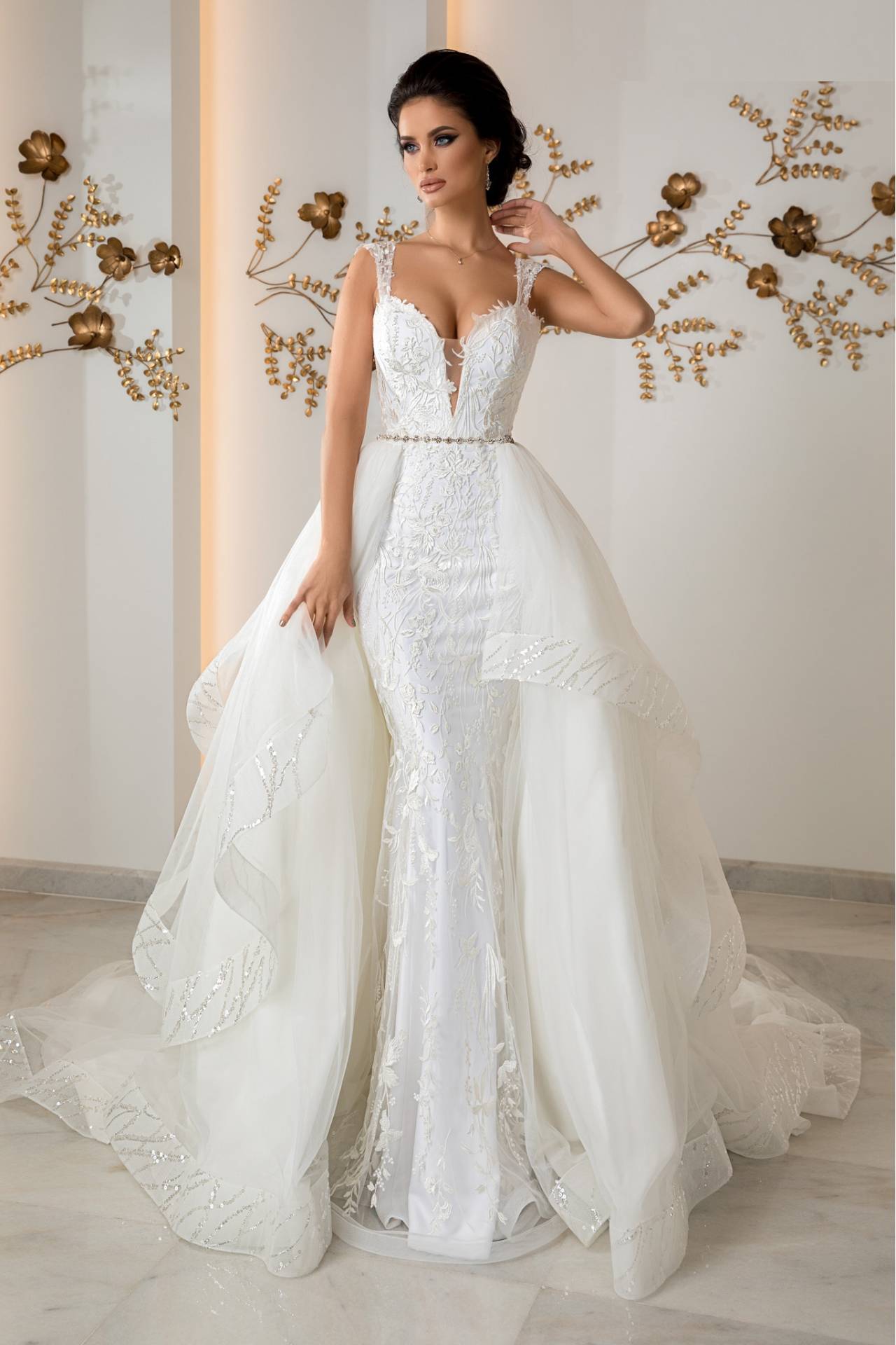 Trena detasabila nu este inclusa in pretul rochiei. Trena detasabila cost 2500 lei.