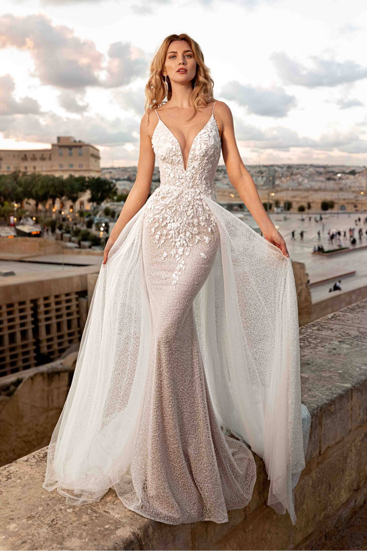 Rochia de mireasa Sierra este speciala prin materialul fin cu margele, paiete si cristale. Finetea acestui material aplicat pe intreaga rochie o face sa fie speciala si rafinata. Aplicatiile 3D incantatoare completeaza materialul fin si ii dau un aer romantic. Trena detasabila se achizitioneaza separat.Este usor de purtat si o face sa fie spectaculoasa.