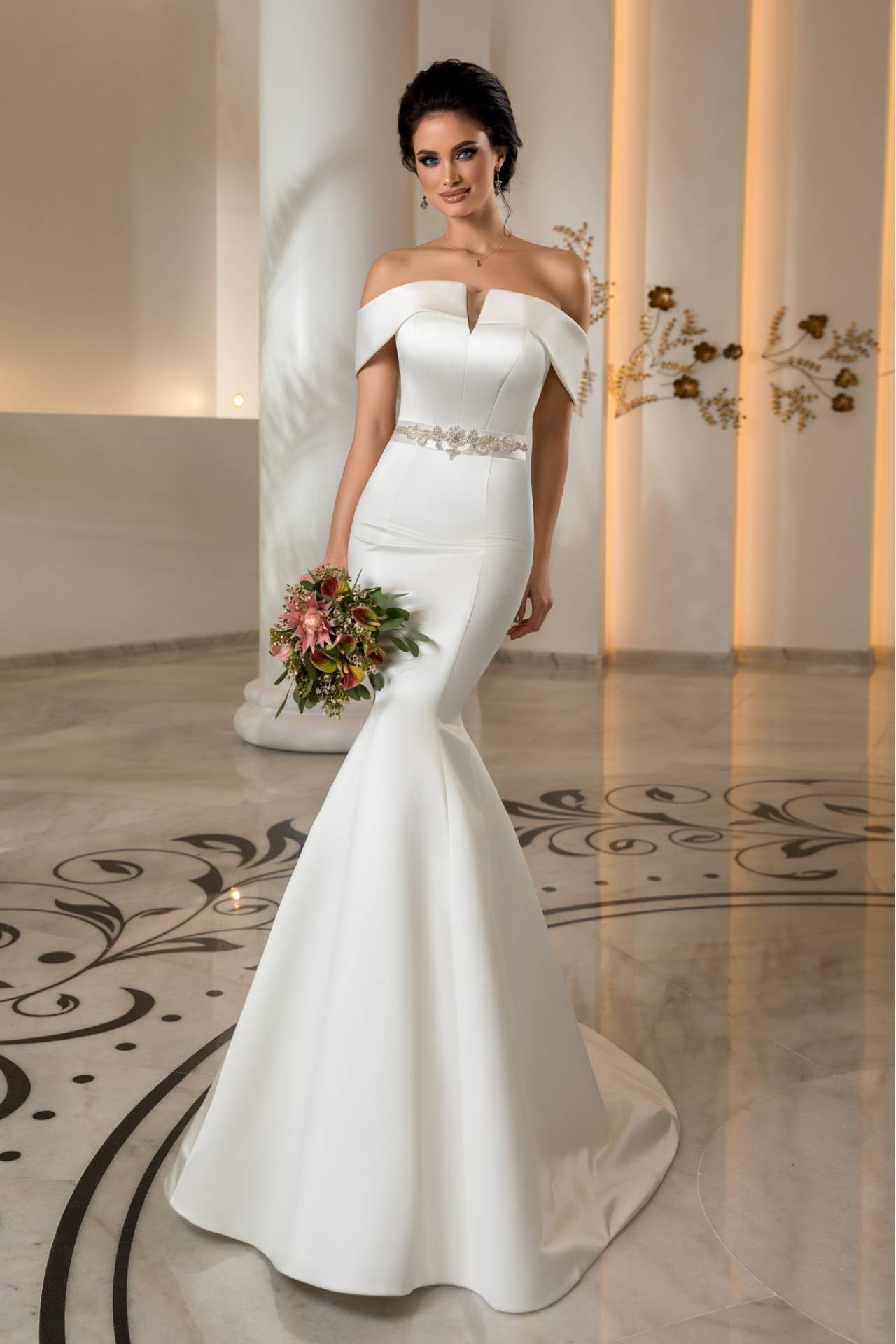 Rochia de mireasa Tulip exprima simplitate prin calitatea superioara a materialului tafta duchesse. Aceasta este o rochie care impacteaza prin eleganta si impecabil. Bretelele cazute sunt speciale tocmai prin romantismul pe care il transmit.