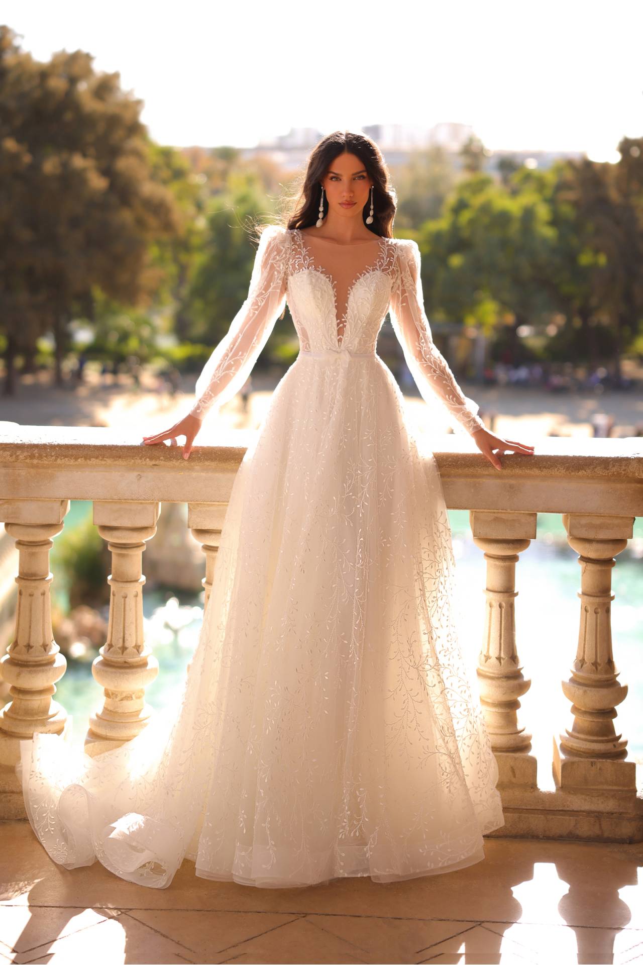 Rochia de mireasă ALURE este alegerea ideală pentru mireasa care caută o rochie de mireasă A-line din dantelă, cu mâneci elegante și detalii romantice. Feminină, rafinată și atent construită, această rochie de mireasă oferă o apariție sigură, elegantă și memorabilă în ziua nunții.
