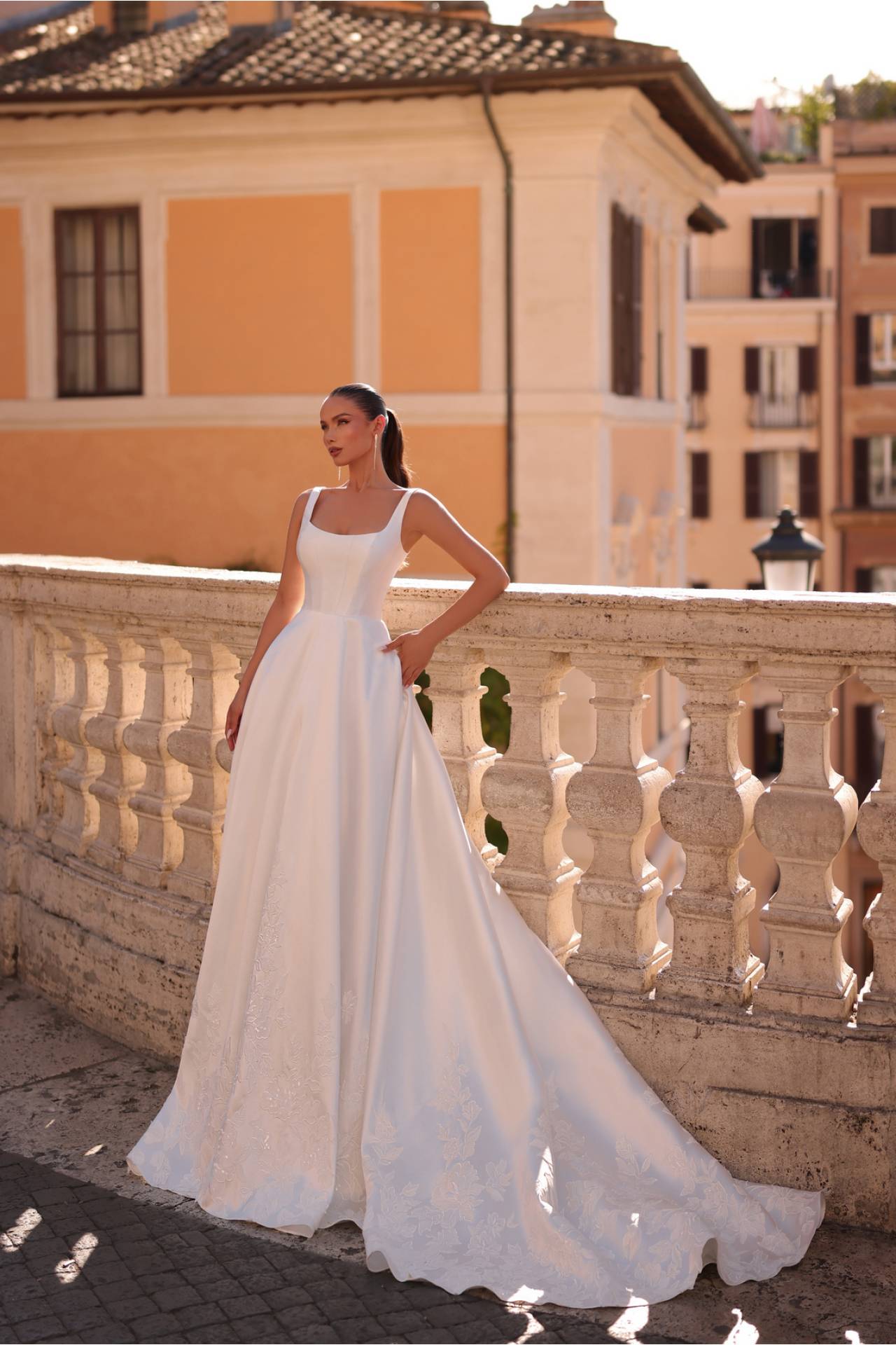 Volumul este atent dozajat, astfel încât rochia să rămână rafinată și ușor de purtat, fără a deveni greoaie. Această abordare face din ANISSA o rochie de mireasă simplă, dar cu un caracter nobil și solemn.