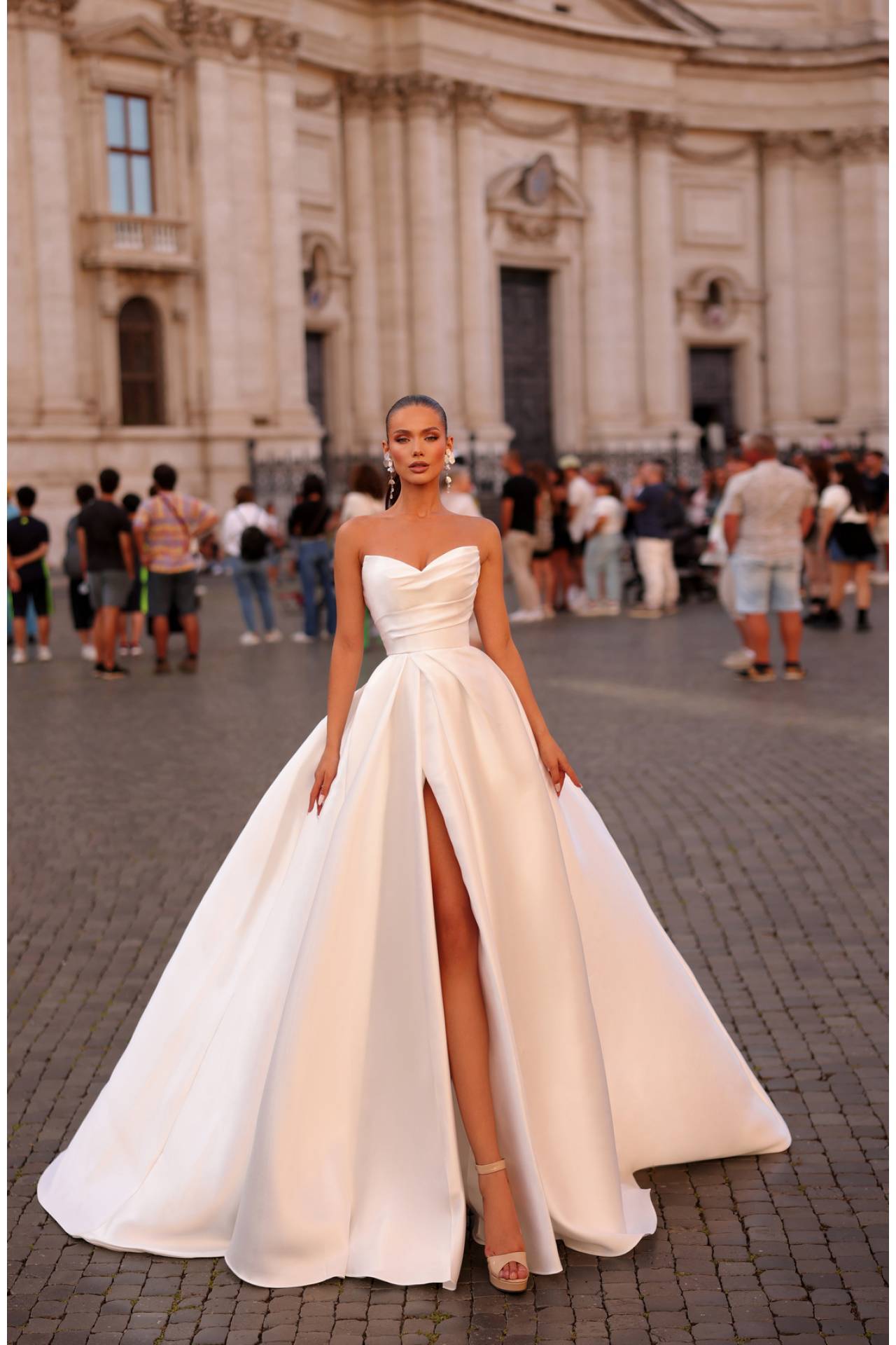 Rochia de mireasă APRIL este alegerea perfectă pentru mireasa care caută un look impunător, stilat și absolut spectaculos. Este o rochie de mireasă A-line simplă care îmbină clasicul cu modernul într-o formă desăvârșită, oferind o apariție sigură, rafinată și memorabilă. APRIL este despre forță feminină, eleganță pură și design bine controlat, creat pentru o zi care merită să fie cu adevărat specială.
