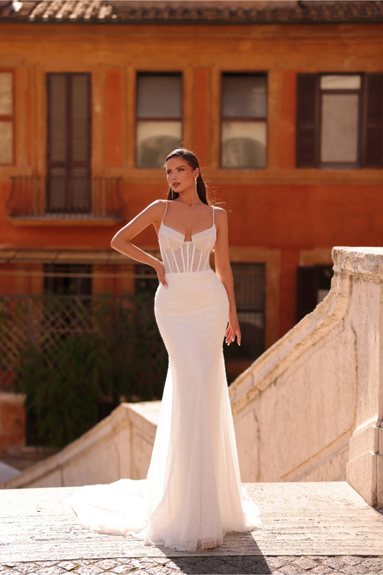 Lipsa volumului excesiv păstrează designul curat și sofisticat, făcând din AVALON o rochie de mireasă sirenă modernă, dar profund rafinată.