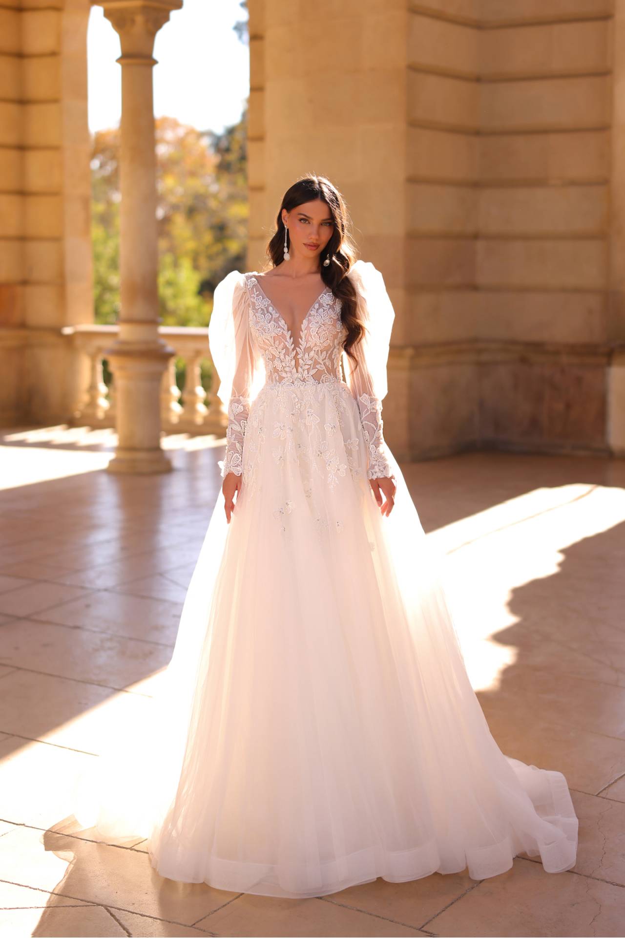 Rochie de mireasă ENIGMA – rochie de mireasă cu mâneci lungi și detalii romantice