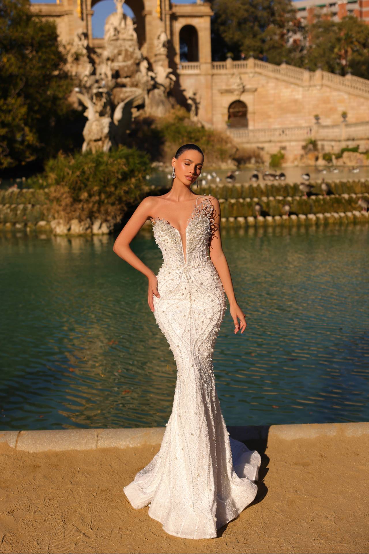 Rochie de mireasă GOLDIE – rochie de mireasă sirenă cu pietre și perle