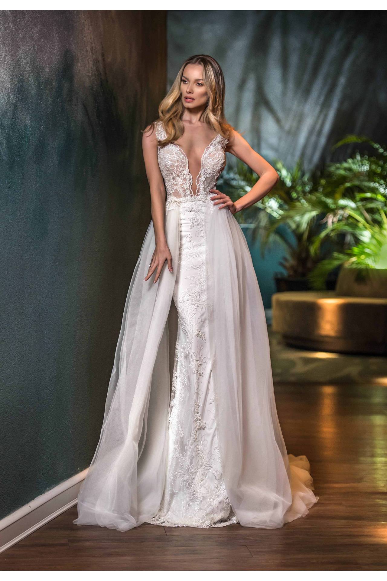 Rochi de mireasa Melbourne se poate accesoriza cu o trena detasabila, ca cea prezentata .