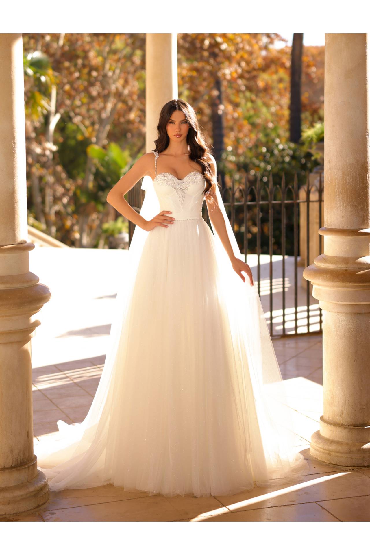 Rochie de mireasă MOONLIGHT – rochie de mireasă A-line cu bretele și corset decorat cu pietre