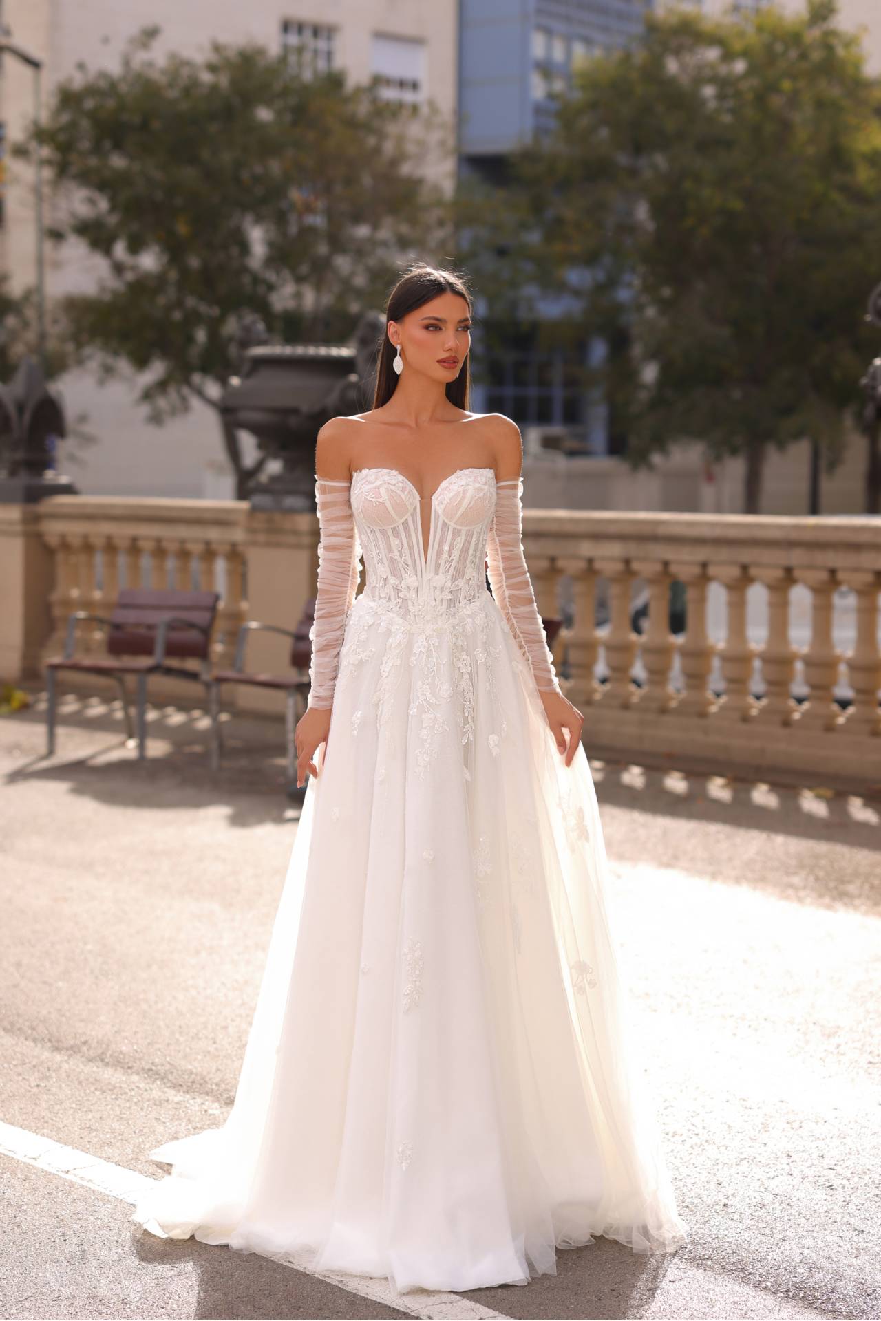 Rochia de mireasă OCEAN este ușor de accesorizat, putând fi completată cu voaluri simple, bijuterii fine sau accesorii statement, în funcție de stilul dorit. Designul său versatil o recomandă pentru miresele care își doresc o rochie de mireasă A-line elegantă, dar adaptabilă diferitelor concepte de nuntă.