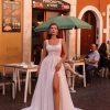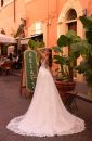 Rochia de mireasă printesa este un adevărat regal al eleganței și rafinamentului. Cu un bust cu bretele, realizat integral dintr-o dantelă fină și delicată, aceasta emană feminitate și grandoare. Dantela coboară grațios pe fusta simplă, conferind un aspect romantic și sofisticat întregii creații. Croiala de tip printesa accentuează talia și subliniază silueta, în timp ce lungimea rochiei până la podea îi conferă o vizualizare demnă de basm. O alegere perfectă pentru miresele care visează să se simtă ca adevărate prințese în ziua cea mare.