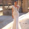 Rochia de mireasă de tip sirena este simplă, însă atrage cu siguranță atenția prin designul său inovator. Cu maneci lungi care îi adaugă o notă elegantă, această rochie pune în evidență formele feminine în mod subtil. Cu o crapătură seducătoare pe picior și un spate gol admirabil în talie, aceasta emană o senzualitate aparte. O alegere perfectă pentru o mireasă care dorește să se simtă fermecătoare și misterioasă în ziua cea mare.