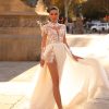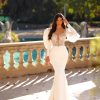 Această rochie de mireasă lungă este o alegere perfectă pentru o ceremonie sofisticată. Silueta sirenei subliniază graciozitatea și formele feminine. Corsetul este decorat cu delicate perle, adăugând o notă de strălucire și eleganță. Bretelele subțiri adaugă un aer romantic, în timp ce spatele închis cu nasturi conferă o notă de seriozitate și rafinament. Fusta simplă, fara franjuri sau volane, completează aspectul minimal și sofisticat.