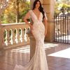 Rochia de mireasă lungă, sirena, este un veritabil obiect de artă pentru orice nuntă de vis. Aceasta îmbină perfecțiunea și eleganța într-un mod uluitor. Bustul cu dantelă brodată subliniază grațiositatea gâtului, oferind o notă romantică și sofisticată întregului ansamblu. Fusta simplă completă perfect silueta, evidențiind în mod subtil formele feminine. Această rochie reală este o alegere ideală pentru orice mireasă modernă și sofisticată care dorește să strălucească în ziua cea mare.