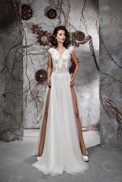 Rochia de mireasa Tucana este potrivita pentru miresele noncorformiste dar care pun accentul pe lejeritate. Senzualitatea corsetului din dantela evidentiaza formele corpului iar detaliile din pietre confera un plus de delicatete.
