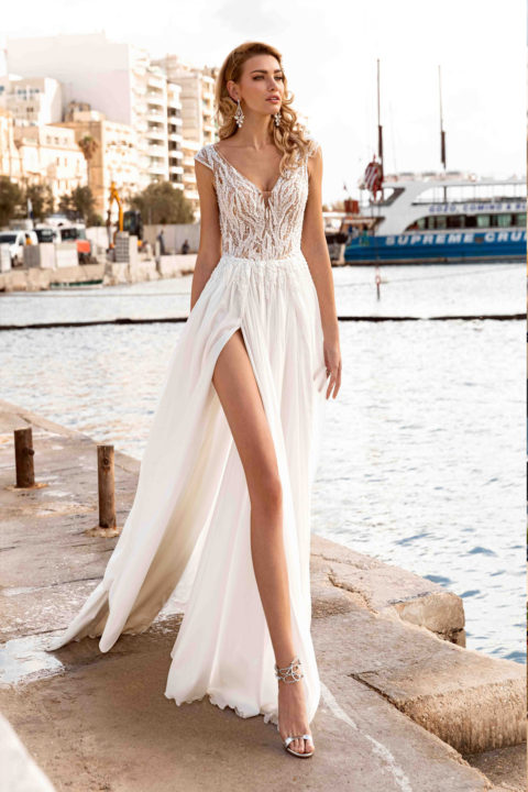 Tot in 2020 se poarta rochiile extreme de decoltate, care pun in evident siluetele mireselor. Se observa ca se folosesc centuri sau curele din pietre pentru marcarea taliei si pentru infrumusetarea tinutei. Dupa cum bine stii, silueta tip clepsidra este cea mai ravnita si cu ajutorul rochiei potrivite, orice mireasa o poate obtine. Cea mai potrivita rochie de mireasa pentru a evidentia acest trend este Rochia de mireasa Lagos. Este o rochie senzuala si indrazneata, potrivita mireselor care vor sa iasa in evidenta.
