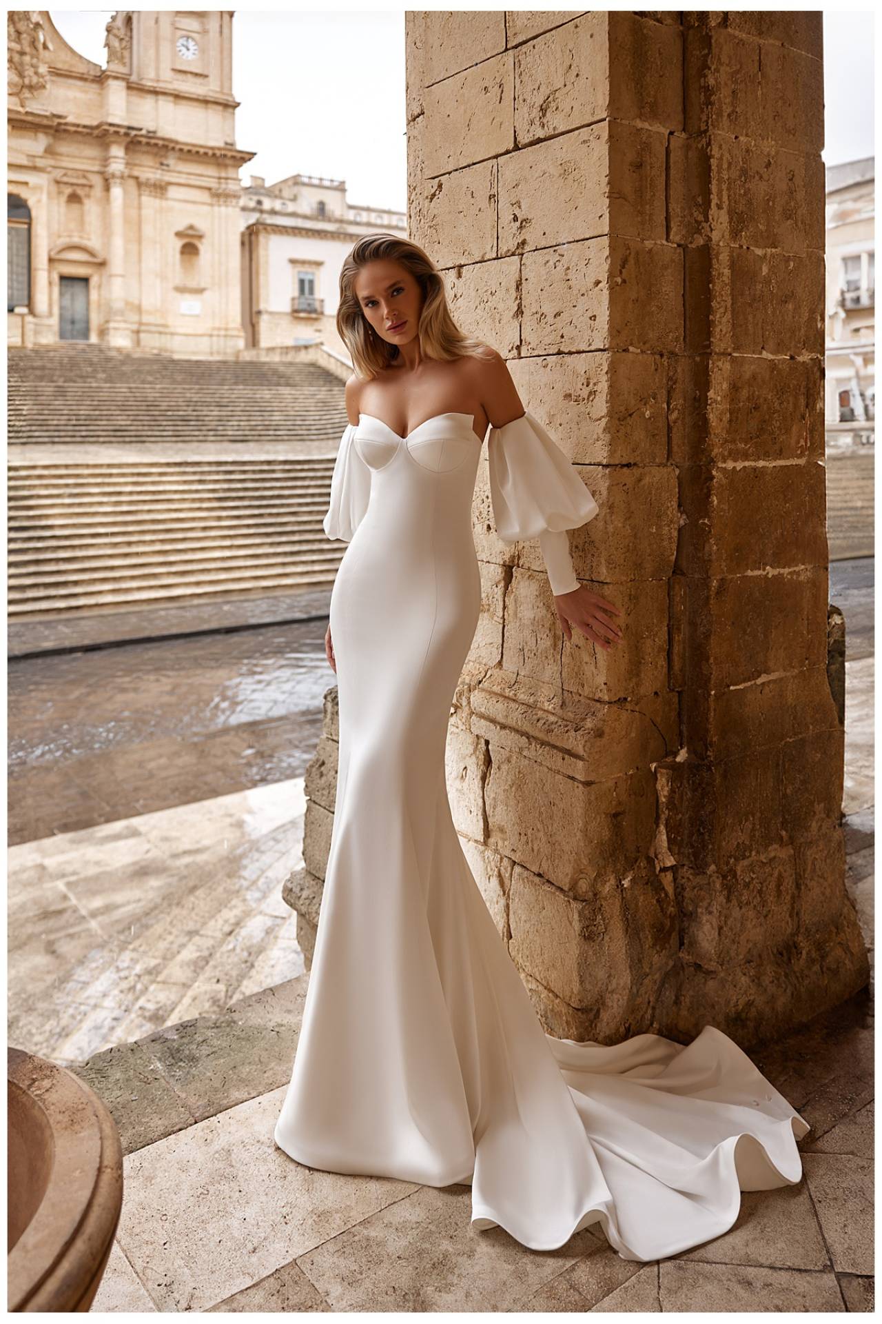 Rochie de mireasă VAYANA – rochie de mireasă sirenă simplă din satin mat, cu eleganță naturală